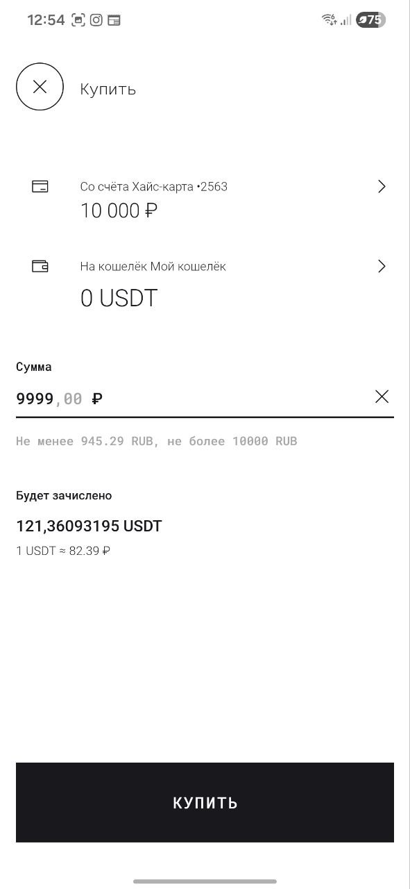 Покупка на карту USDT 82,8 р