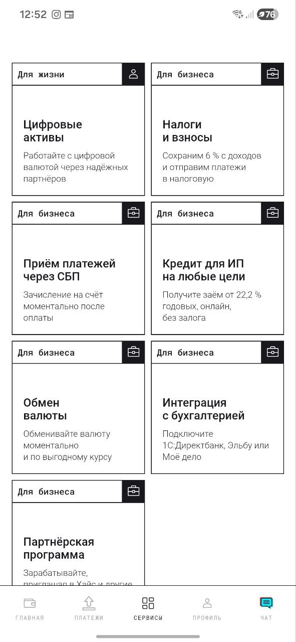 Далее в приложении банка открываем вкладку СЕРВИСЫ.