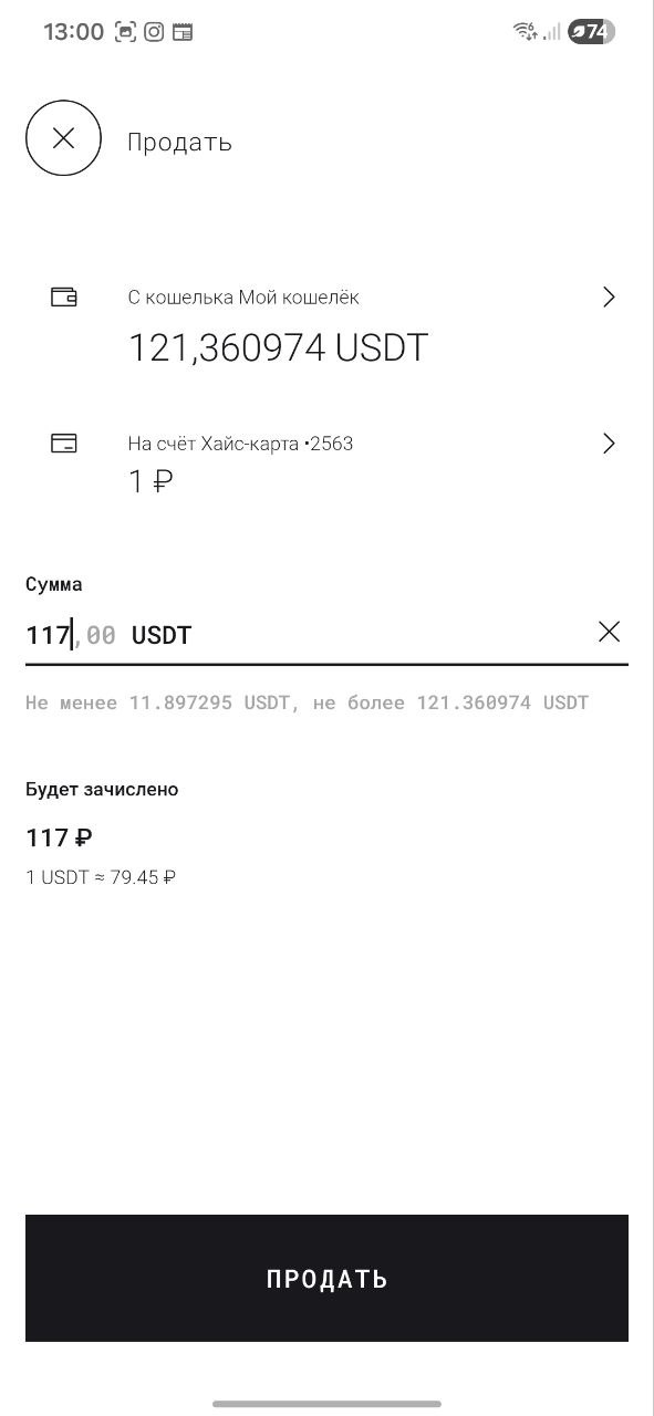 Продажа USDT 79.45р +4 USDT комиссия сети