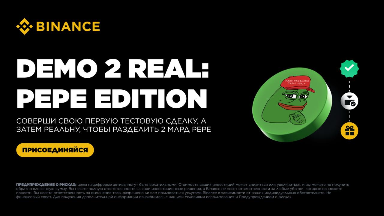 Самая известная крипто биржа в мире Binance запустила демо торговлю криптовалютами на спотовом и фьючерсном рынках. В честь этого события компания разделит между всеми участниками призовой фонд в размере 2 миллиардов мем монеты PEPE 17 декабря 2025 года. Если у тебя еще нет аккаунта на бирже Binance или твоя первая сделка на бирже бал уже после 16 ноября 2025 года, то выполнив несколько простых условий ты сможешь гарантированно получить вознаграждение.